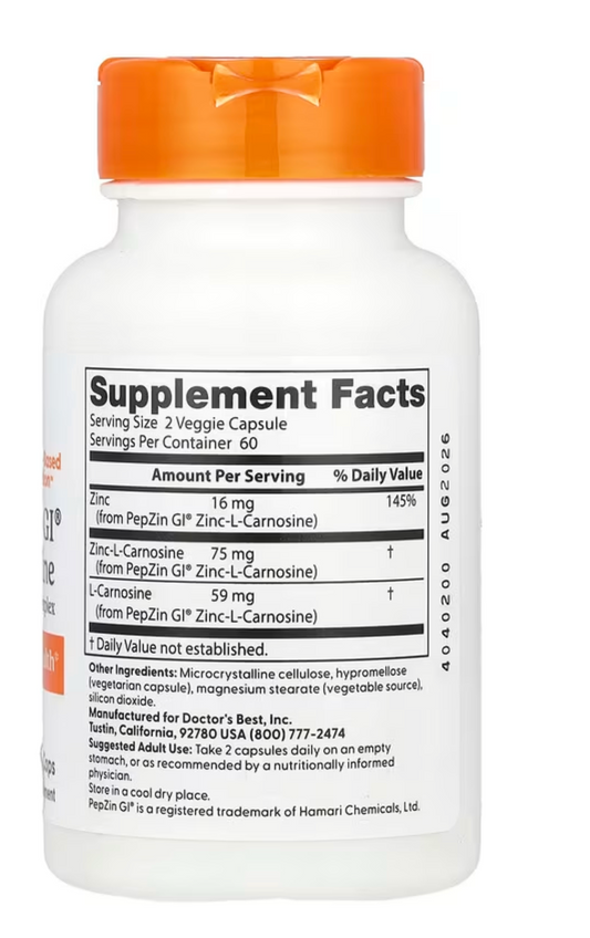 Doctors Best PepZinGi, Zinc-L-Carnosine Complex,120 Veg Capsules