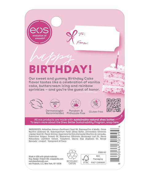 EOS Natural Shea Lip Balm, Birthday Cake, All-Day Moisture, 0.14 oz