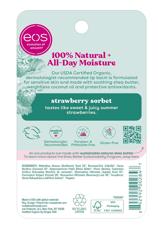 EOS 100% Natural & Organic Lip Balm, Strawberry Sorbet, All-Day Moisture, 0.25 oz