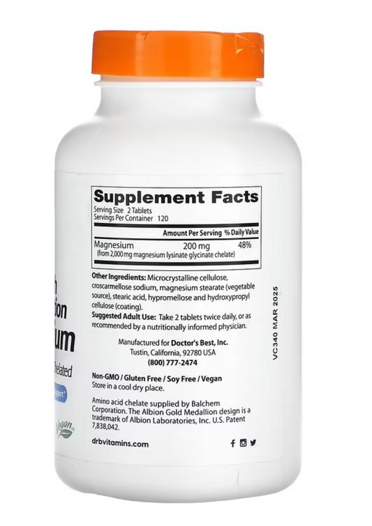 Doctor's Best High Absorption Magnesium 100mg 100% Chelated 240 Tablets