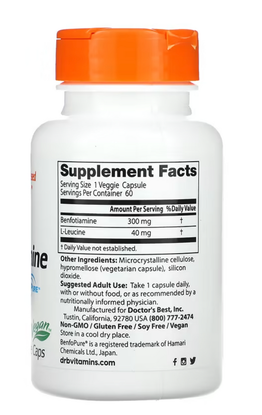 Doctor's Best, Benfotiamine 300 with BenfoPure, 300 mg, 60 Veggie Caps