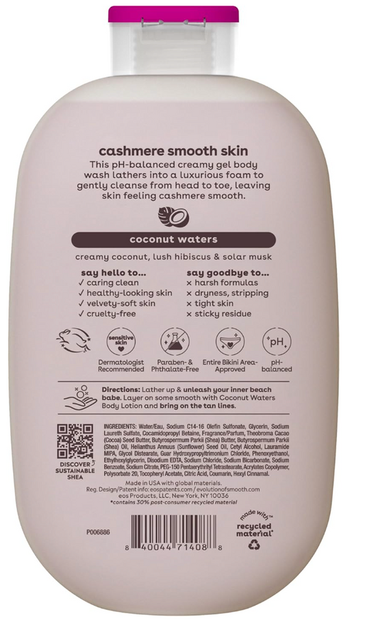 eos Shea Better Cashmere Body Wash, Coconut Waters, Moisturizing and Nourishing, pH Balanced Creamy Gel Formula, Paraben & Phthalate Free, Sensitive Skin,16 fl oz