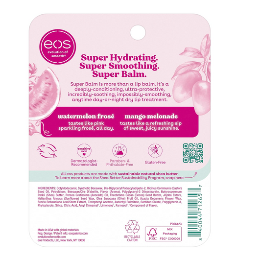 EOS 24H Moisture Super Balm, Watermelon Frosé & Mango Melonade, Lip Mask, 2-Pack, 0.35 fl oz