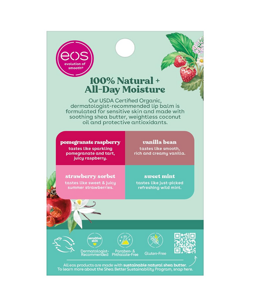 eos Organic Lip Balm Sticks – 4 Pack (Strawberry, Vanilla, Mint & Pomegranate)