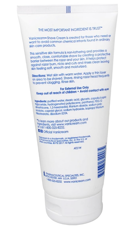 Vanicream Shave Cream ,Fragrance, and Gluten Free , For Sensitive Skin , 6 Ounce